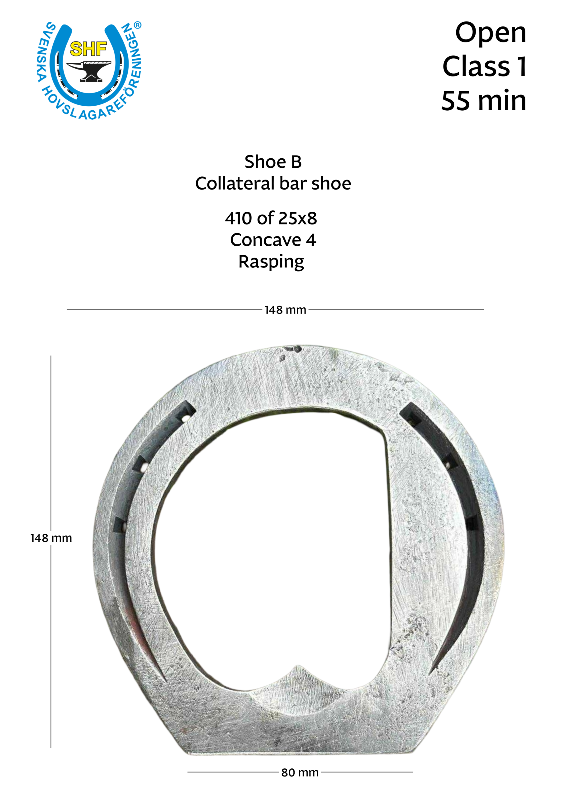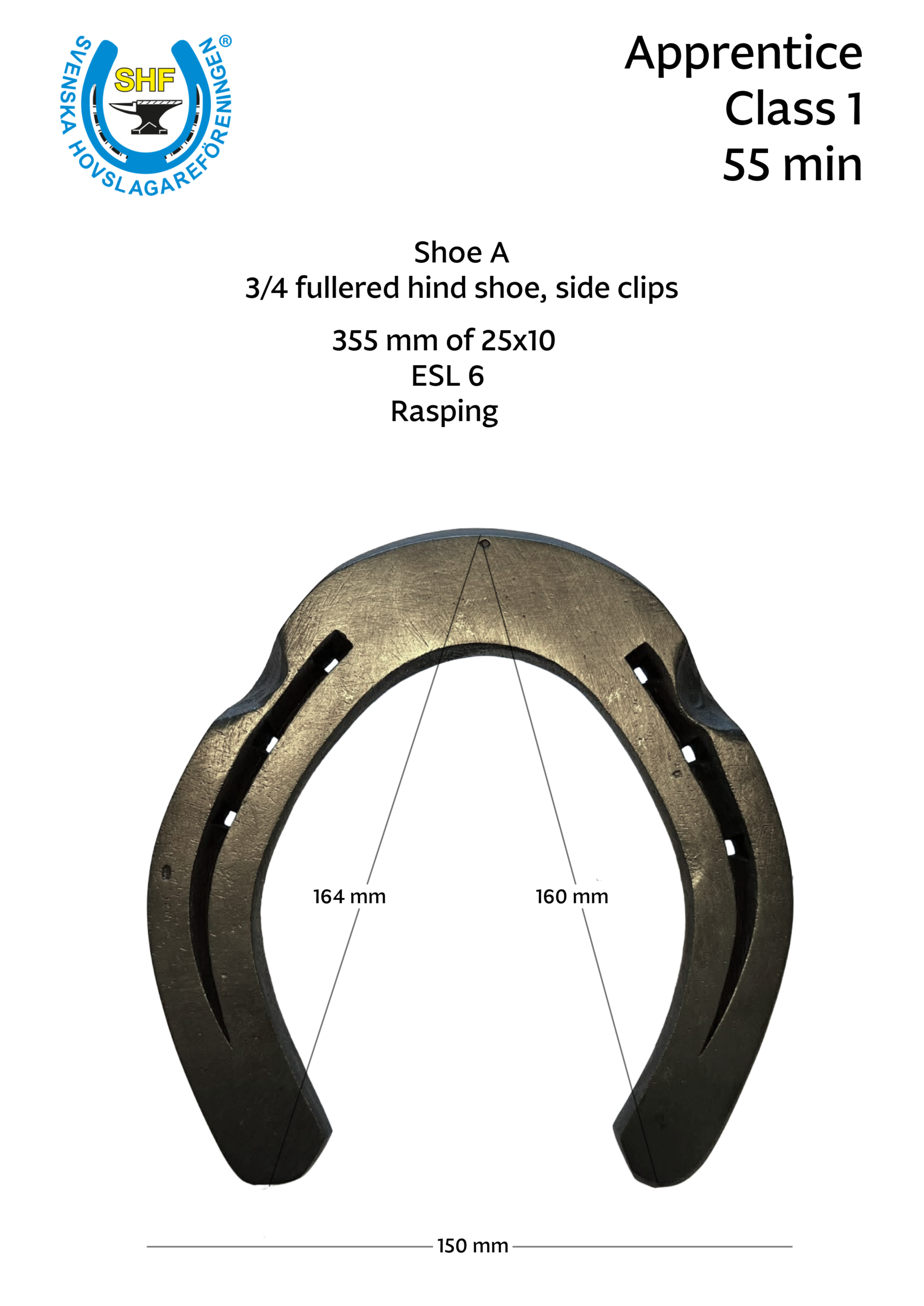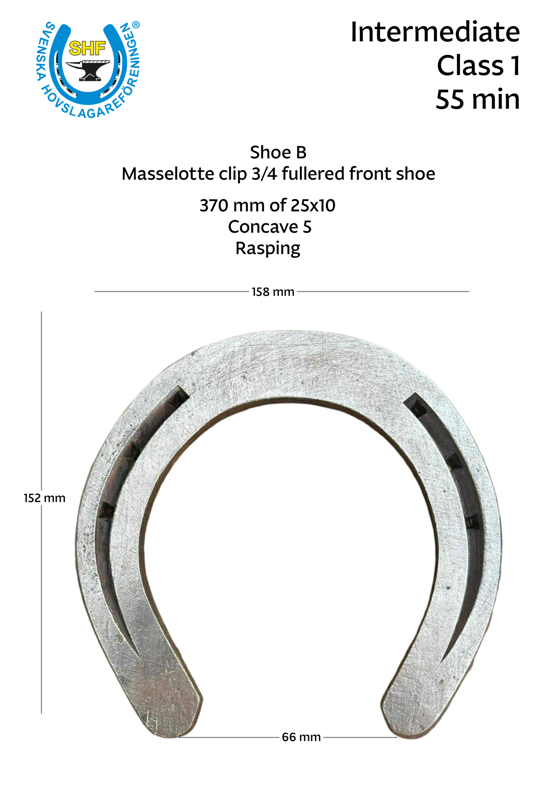 Class 1 – SHOE A hind plain stamp & SHOE B Masselotte clip 3/4 fullered front shoe