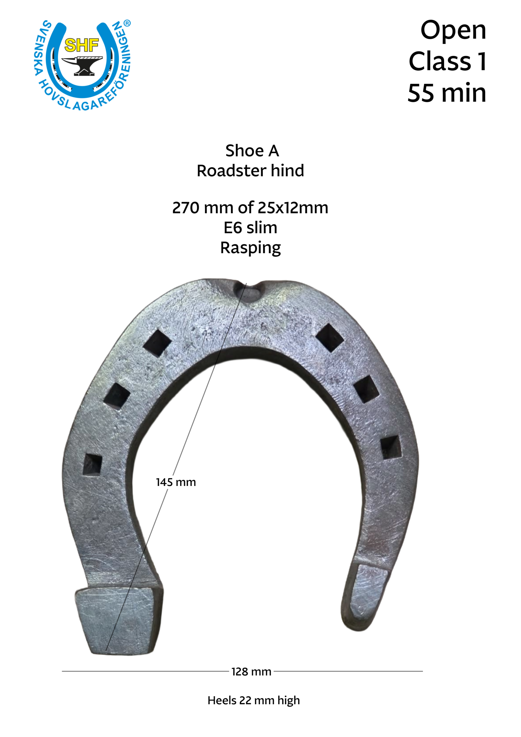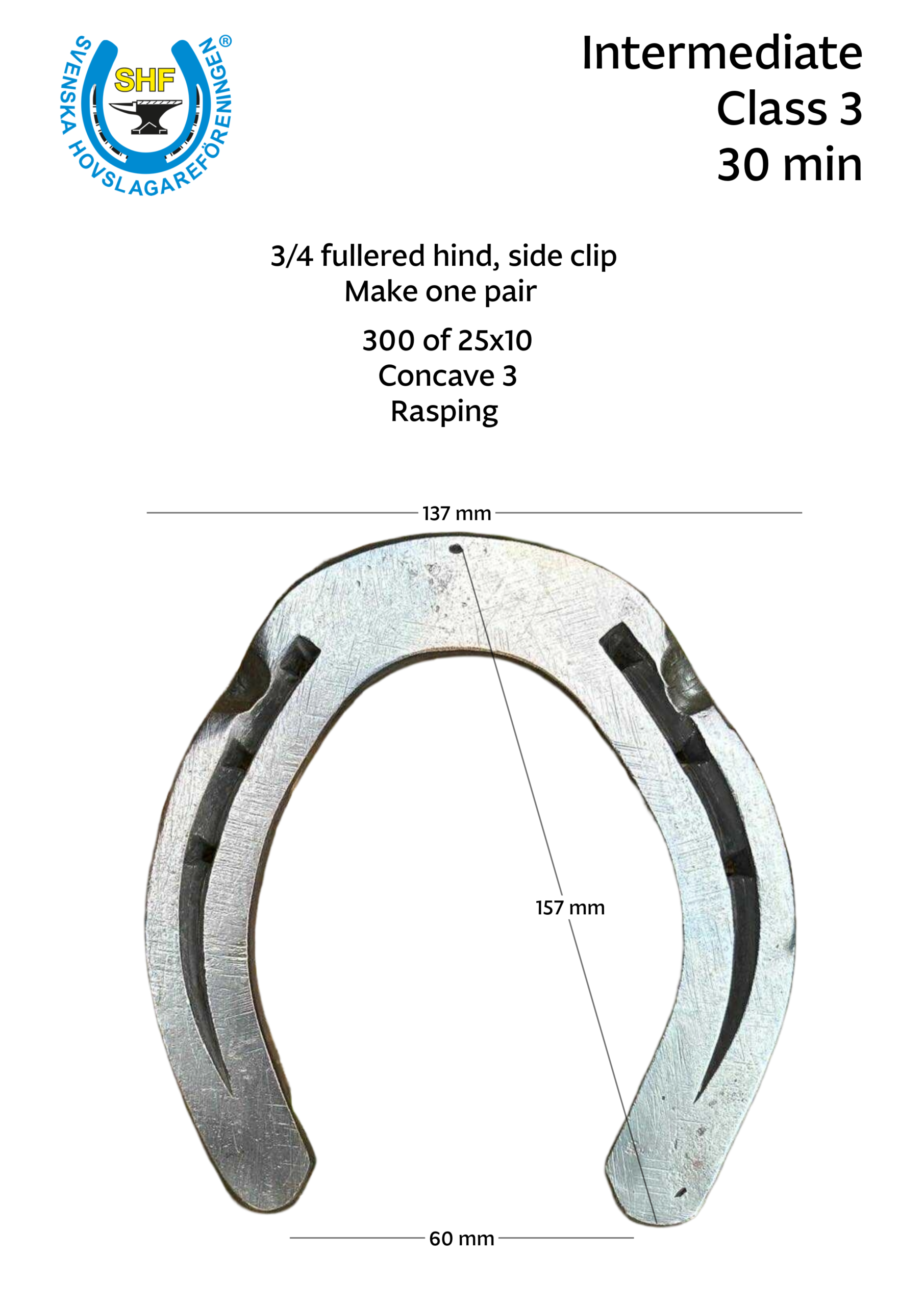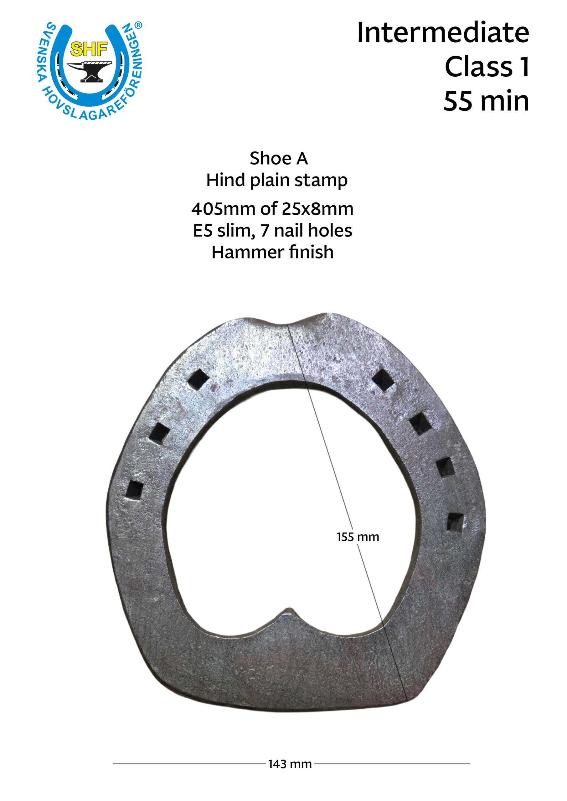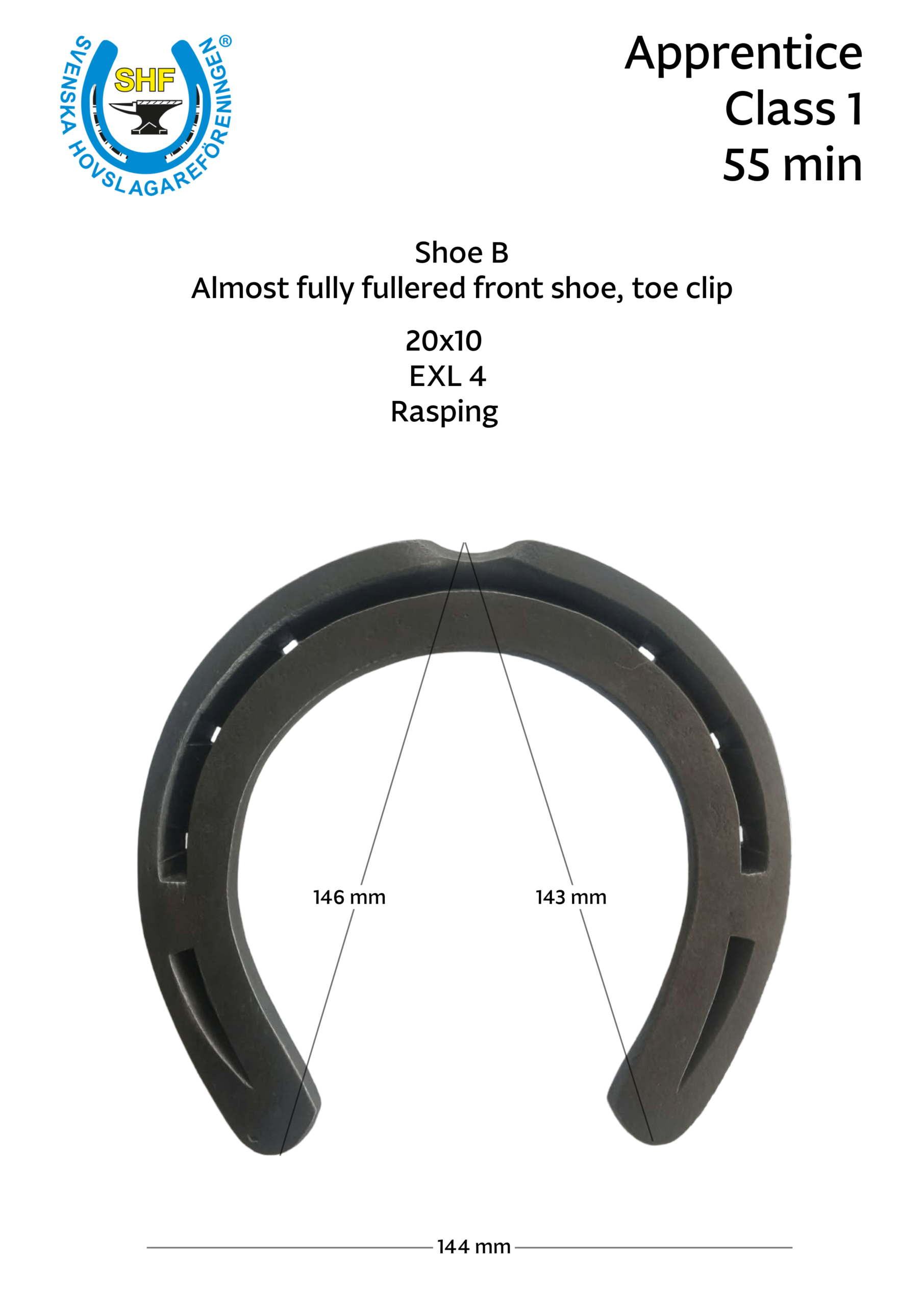 Class 1 – SHOE A hind plain stamp & SHOE B Masselotte clip 3/4 fullered front shoe