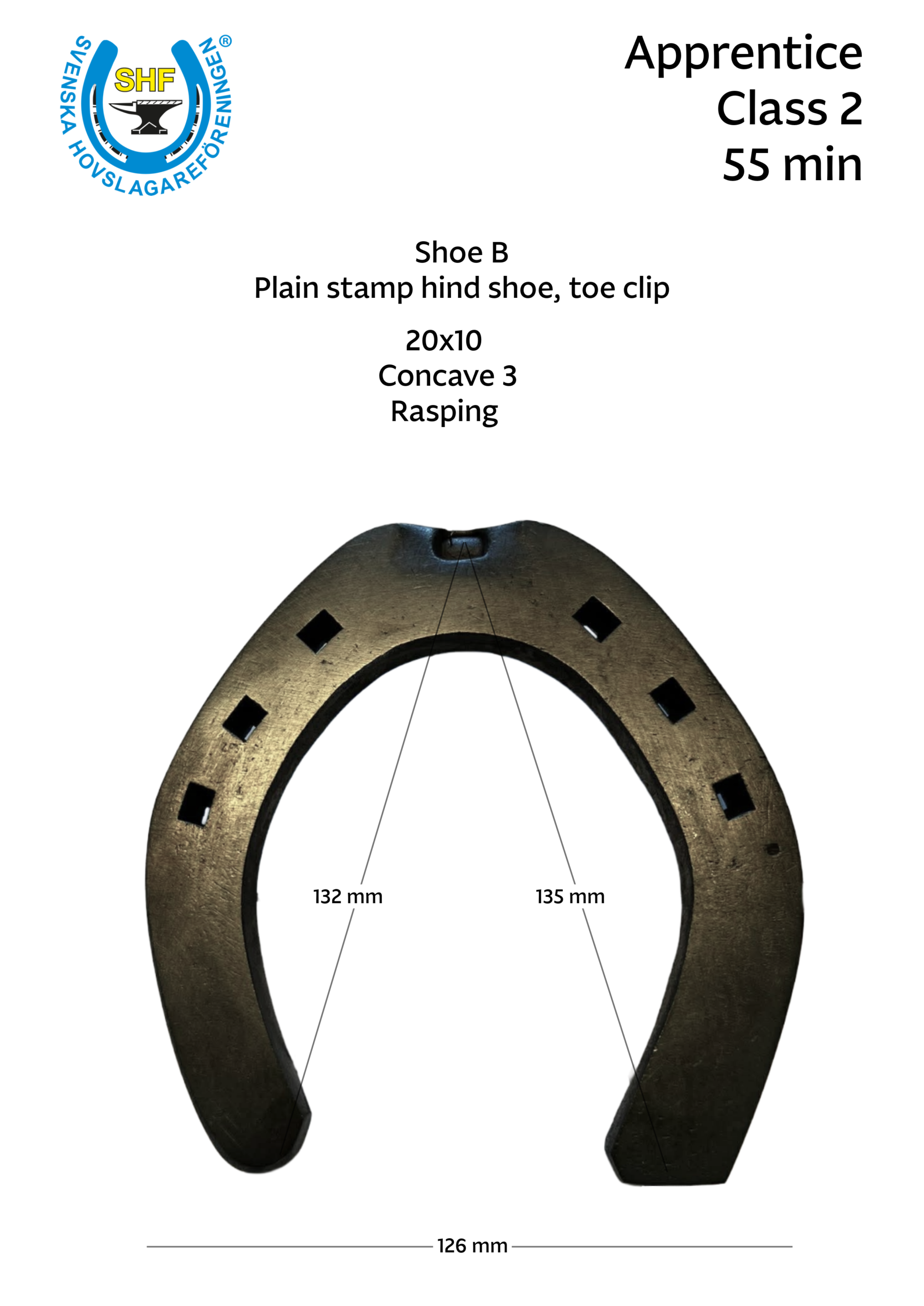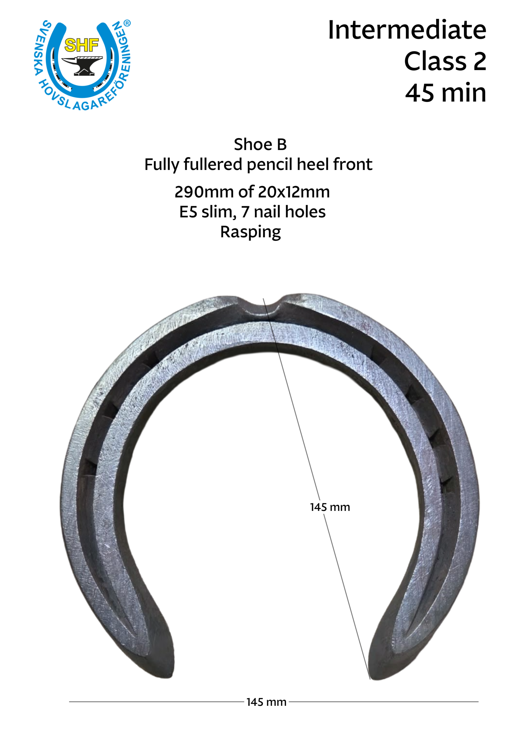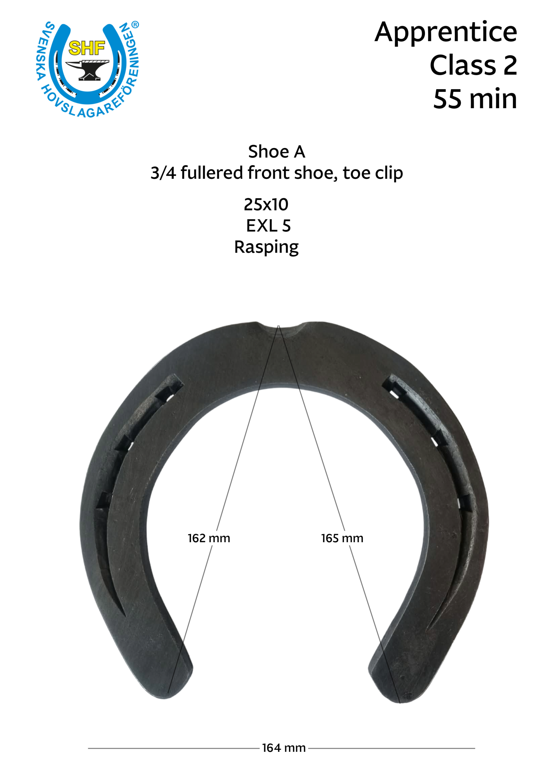 Class 2 – SHOE A 3/4 fullered front shoe, toe clip & SHOE B Plain stamp hind shoe, toe clip