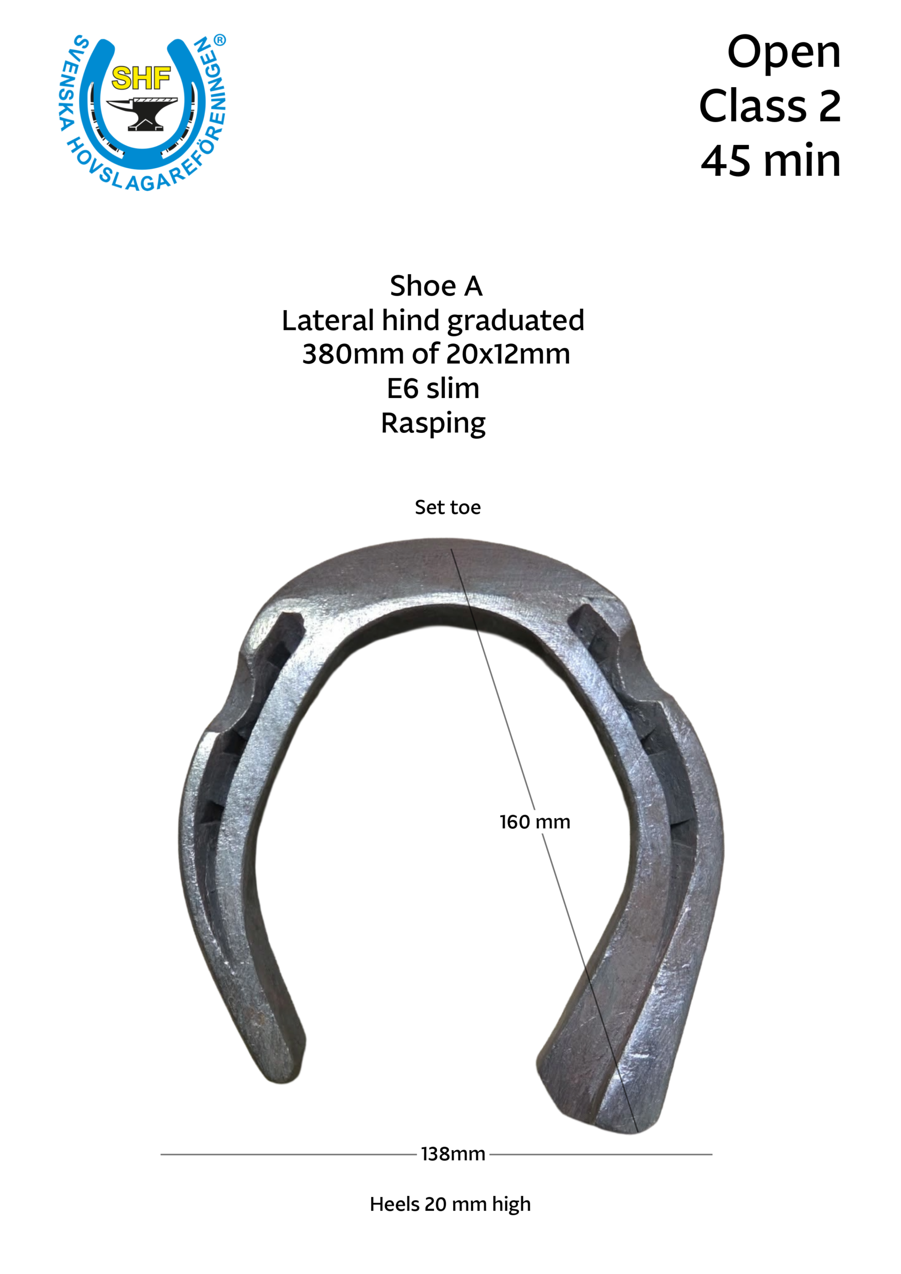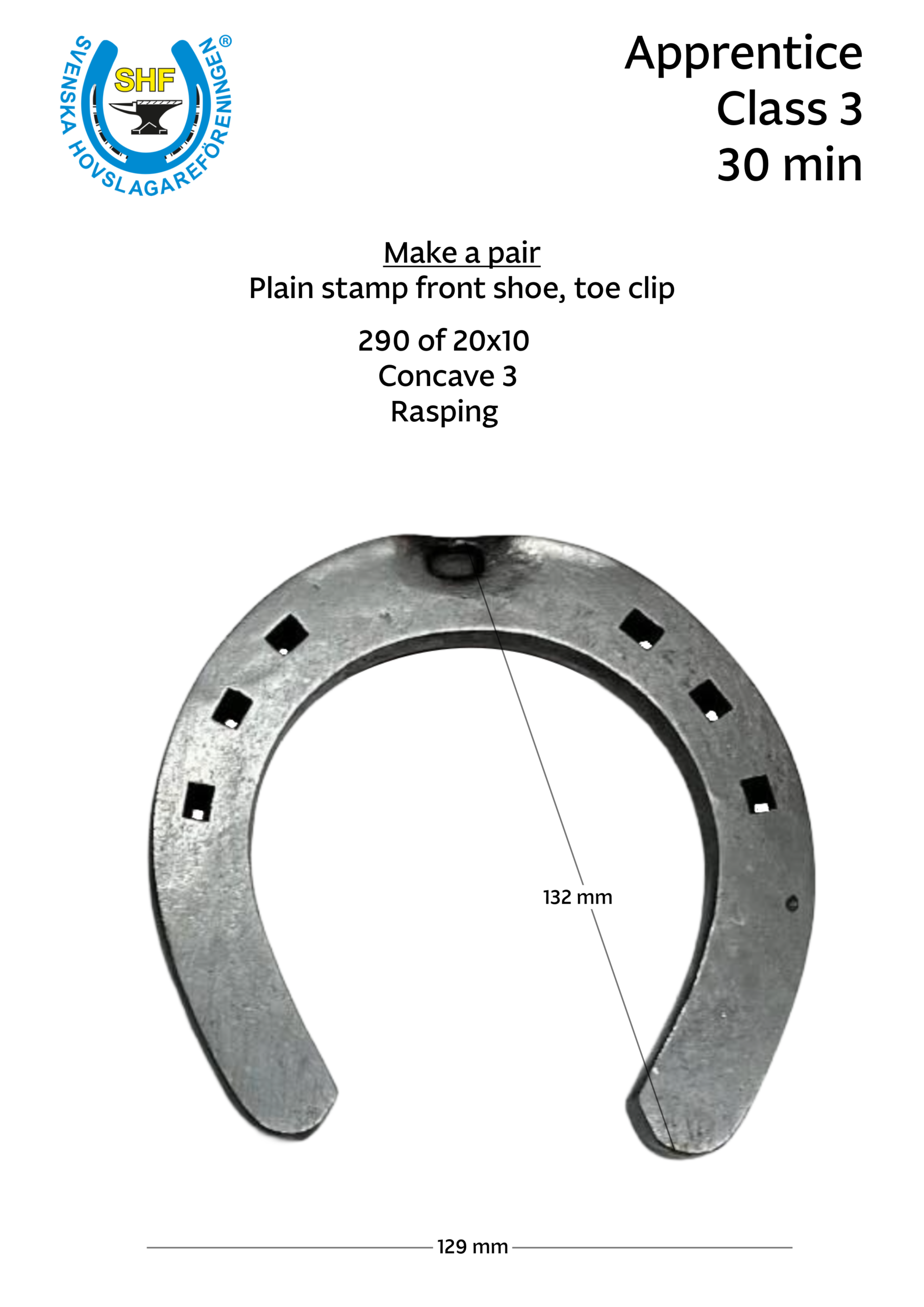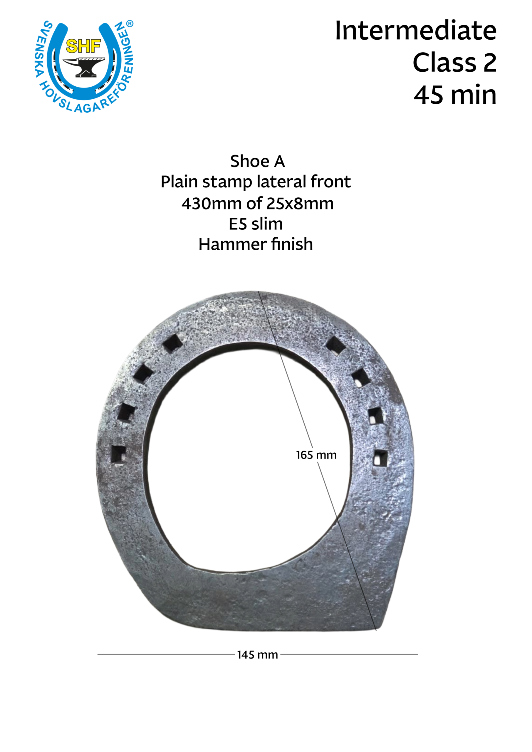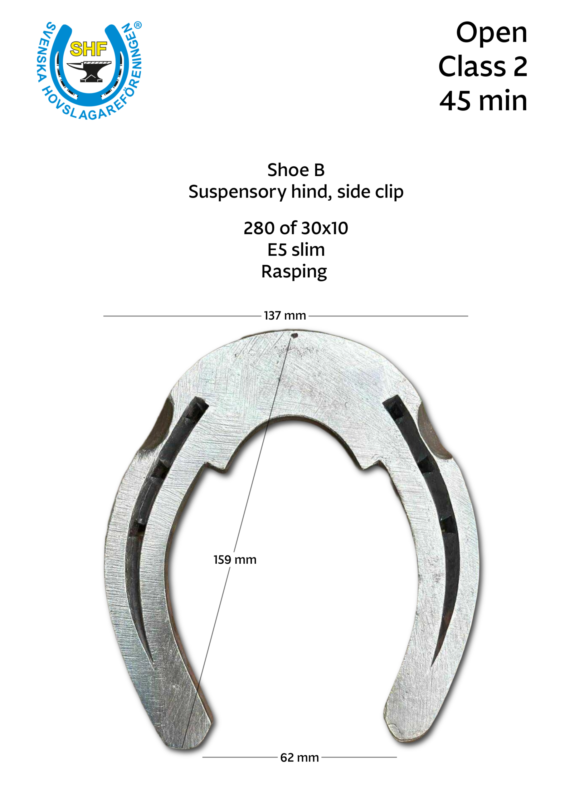 Class 2 – SHOE A 3/4 fullered front shoe, toe clip & SHOE B Plain stamp hind shoe, toe clip